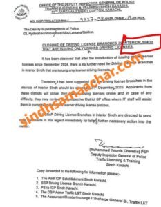 “CLOSURE OF DRIVING LICENSE BRANCHES INTERIOR SINDHTHAT ARE ISSUING ONLY LERNER DRIVING LICENSES”.