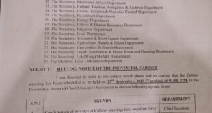 ڪراچي( رپورٽ: آفاق ڀٽي سنڌسماءَچار) سنڌ ڪابينا اڱاري ڏينهن پي اَي ايف کي زمين الاٽ ڪرڻ جي منظوري ڏيندي، لينڊ يوٽيلائيزيشن کاتي قانوني گهرجون مڪمل ڪري ڇڏيون. وڏي وزير مراد علي شاهه سنڌ ڪابينا جو اجلاس 23هين سيپٽمبر اڱاري ڏينهن سڏائي ورتو آهي، اجلاس لاءِ 39 نڪتن تي مشتمل …